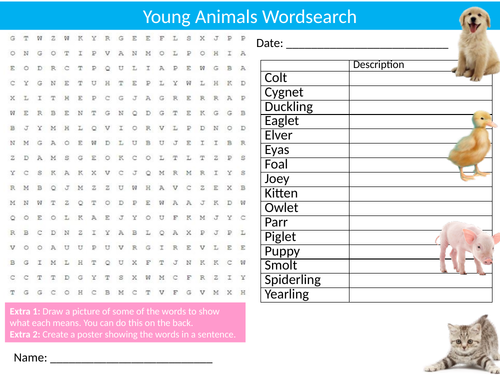 Young Baby Animals Wordsearch Sheet Starter Activity Keywords Cover Nature