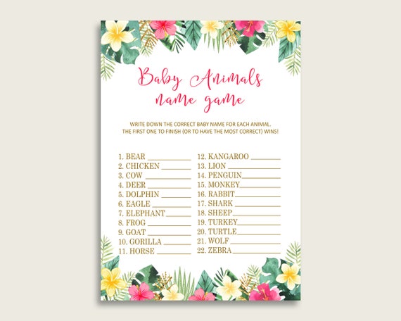 Baby Animal Names Baby Shower Baby Animal Names Hawaiian