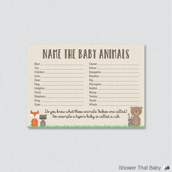 Baby Shower Games Baby Animals Name Game Woodland Baby Shower Woodland Shower Game Baby Animals Shower Game Woodland
