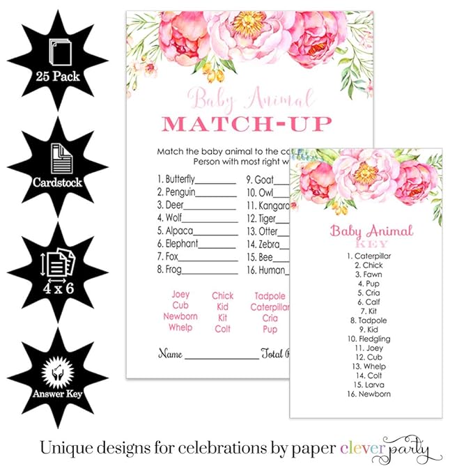 Guess The Baby Animal Baby Shower Game Floral Theme