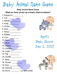 Printable Baby Shower Name The Baby Animal Game