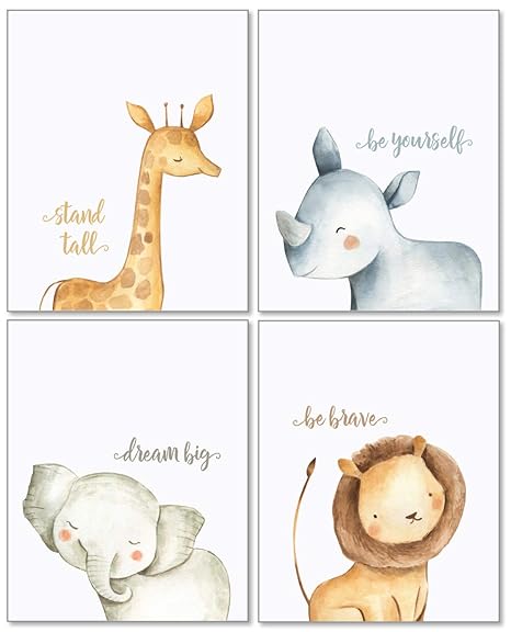 Safari Baby Animals Nursery Decor Art Nursery Set Of 4