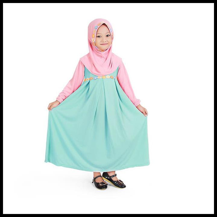 Baju Muslim Gamis Anak Perempuan Warna Mint Peach Lucu Simple