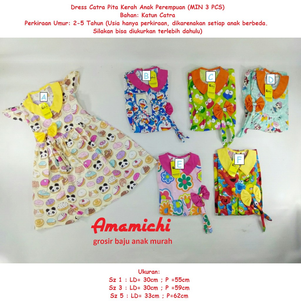 Dress Anak Perempuan Catra Pita Kerah Lucu Baju Anak Perempuan Usia 2 5 Tahun Size 135