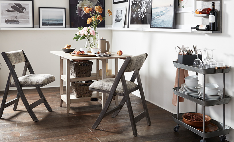 Pacific Palisades No. 2 - Mark D. Sikes | Classic dining ... from i.pinimg.com And speaking of seats, we have a wide selection of dining armchairs and side chairs, with either upholstered or wood seats, along with upholstered host. I staged the dining area in the kitchen with just a small square table (less than 3'x3') and two chairs. Dining room design idea #1: Angela and tania created a murphy table that folds flat against the wall. The inductive is the best place when you want about photos to find brilliant ideas, look at the picture, these are very cool images. However, at the end of the kitchen is a breakfast nook and a table where i can seat 4. That small 'suggestion' of a dining area did the trick. If your dining room doesn't have a closeable doorway, you could hang curtains for privacy.